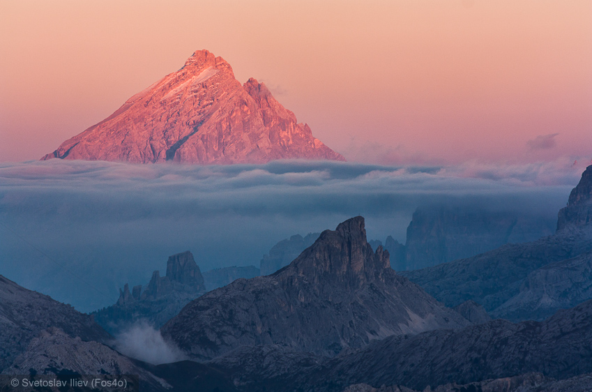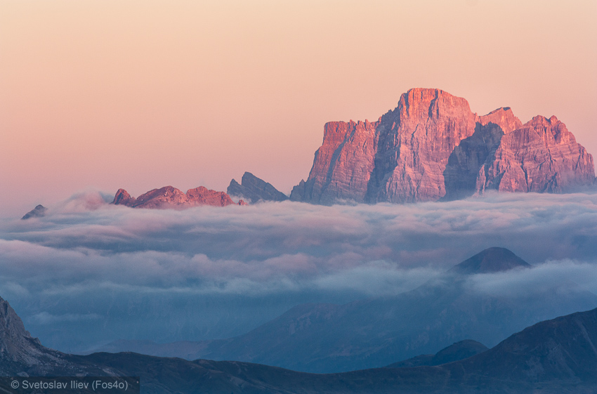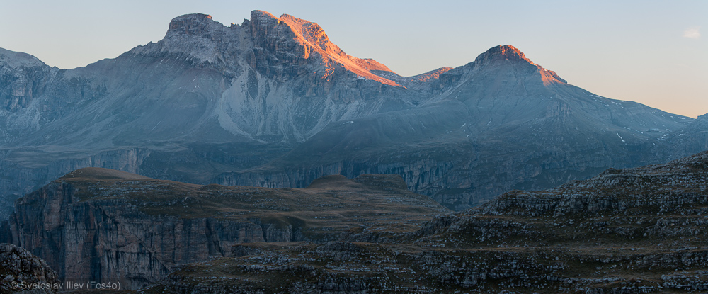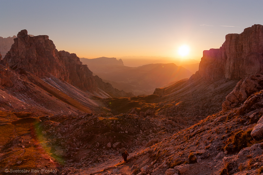 After long lounging on the peak we descend back to the hut, and after few hours found a nice place for the tent at the foot of peak Sass Di Campaccio. The idea was at sunset to take photos from the peak.