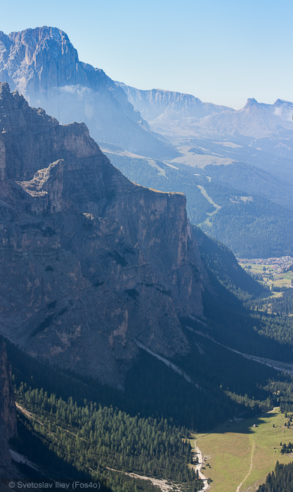 At last next morning the sun smiled and … unfroze us a bit 🙂 We left the snow covered peak to look at us from its throne, and headed to Val Gardena. We stayed there one night and next afternoon climbed up a trail to the right of Val Lunga.